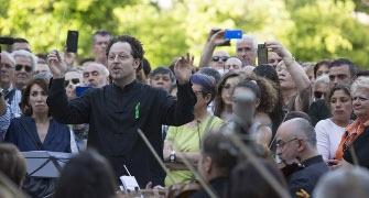 John Axelrod dirige a los músicos de la Sinfónica, la tarde de ayer en la Plaza Nueva.